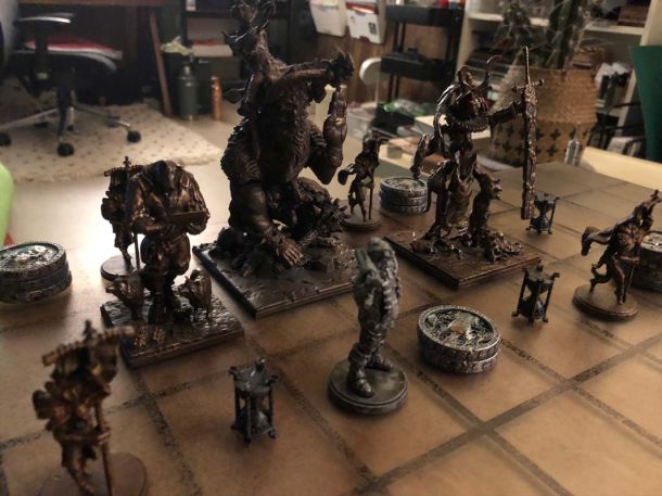 This month I worked a lot on two miniatures. A level 3 angel and a champion. I also made and printed a lot of cards, as they now have to be oriented very differently (with the new layout of the game board).