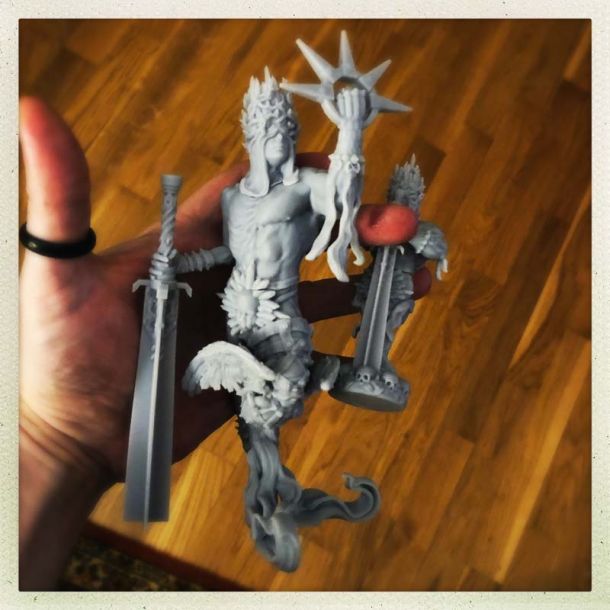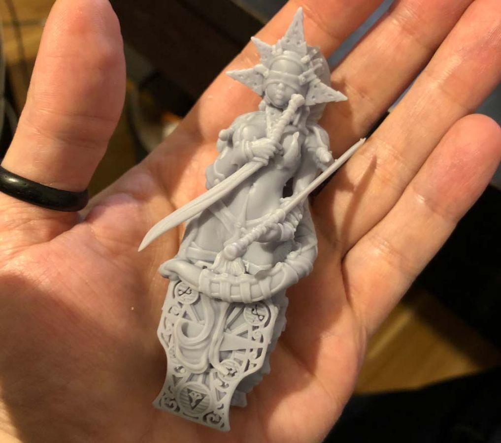 Structural defects sometimes only became apparent after the first print. Sometimes a model leans on a thin sword that presses into the ground at a right angle. However, as soon as the weight presses on a thin structure at an angle, even fully hardened resin bends quite easily.