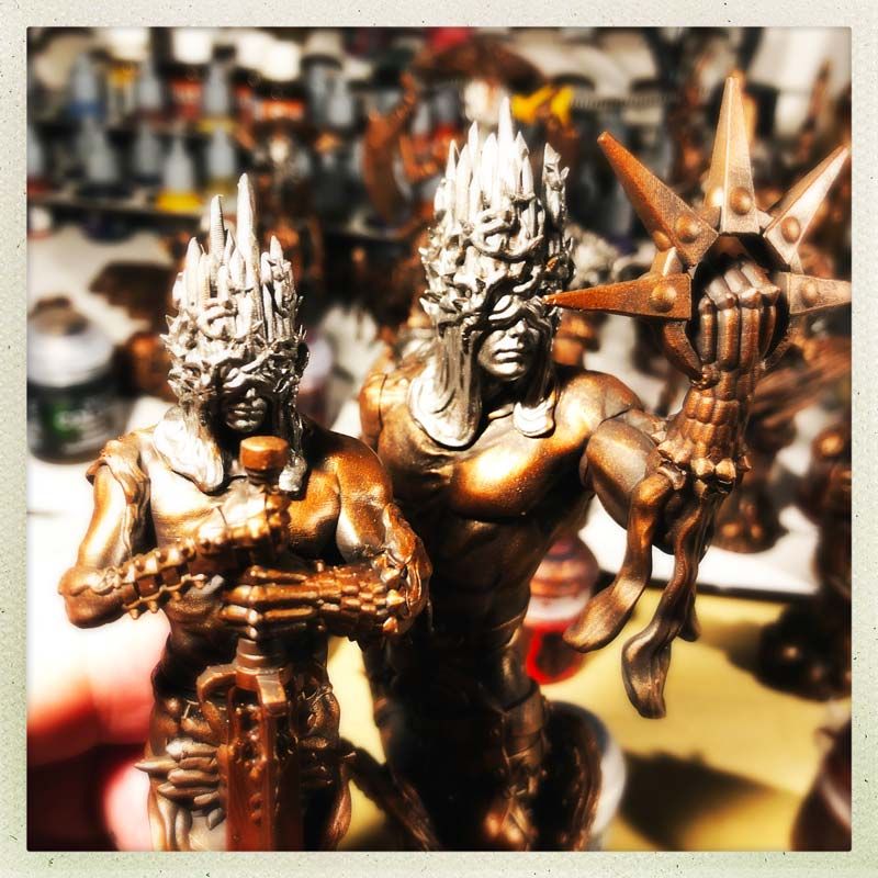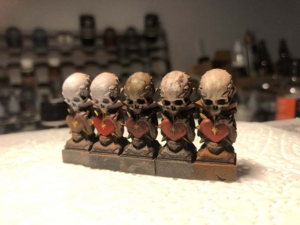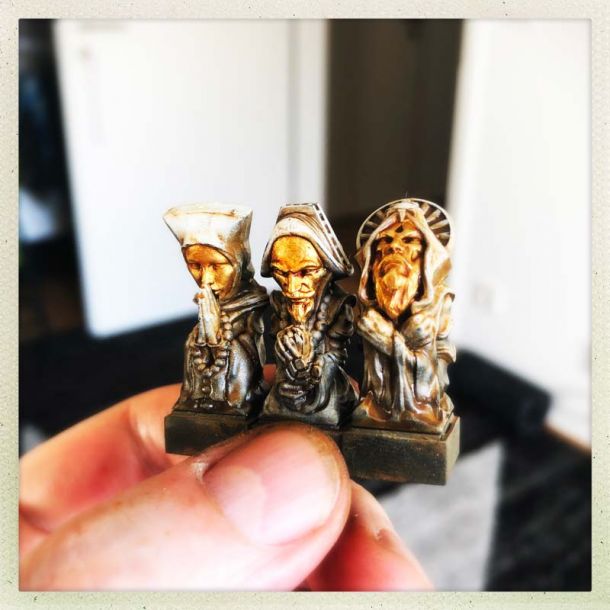 The painting process took 50 days in total, only half days of course, because I have a job where I'm needed. However, 25 of these 50 days were purely trial and error. During this time, I painted over 260 human models, over 100 monsters, champions and their busts, temples, citadels, vassals and idols, scouts and over 200 coins. I think that with the test prints there were over 600 miniatures.