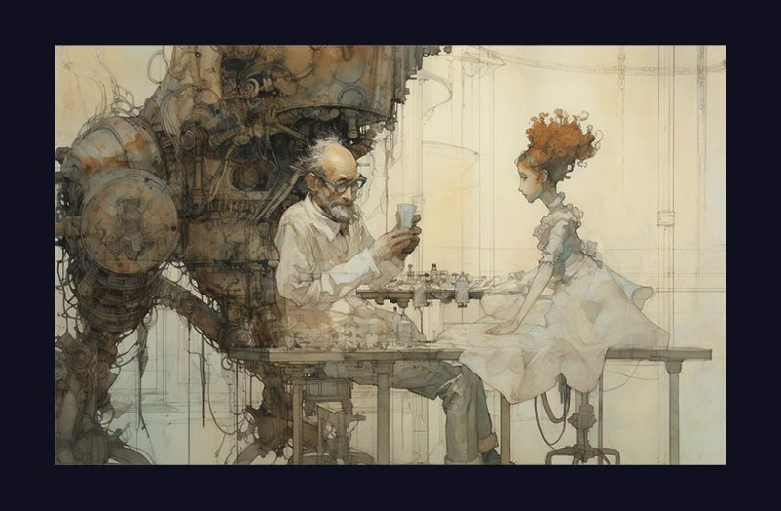And when the scientist's daughter died, he redesigned her. She was made of metal and beloved memories. And he swore to himself that he would incorporate her soul into the replica and her irrepressible curiosity.