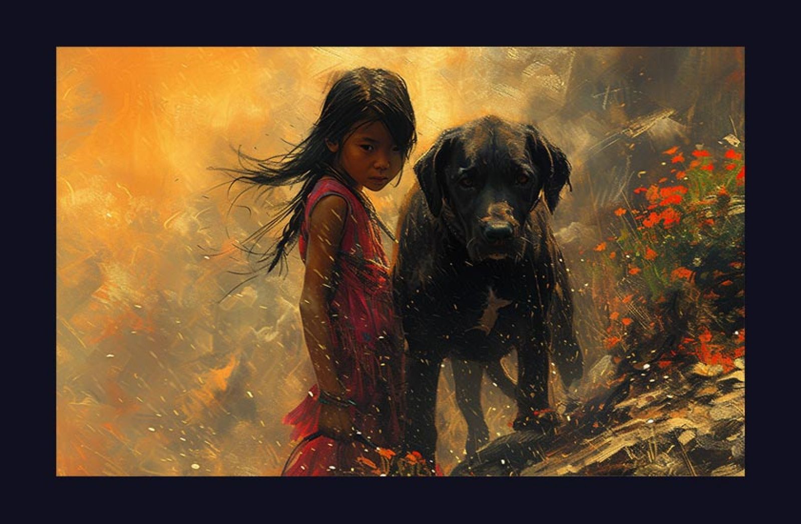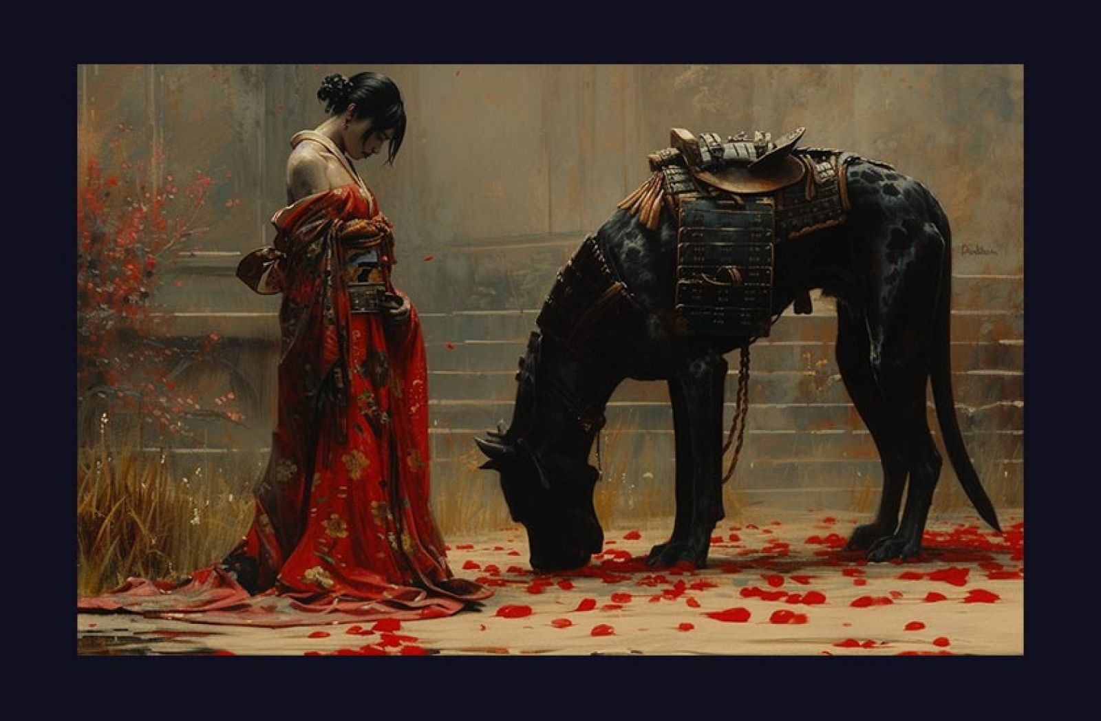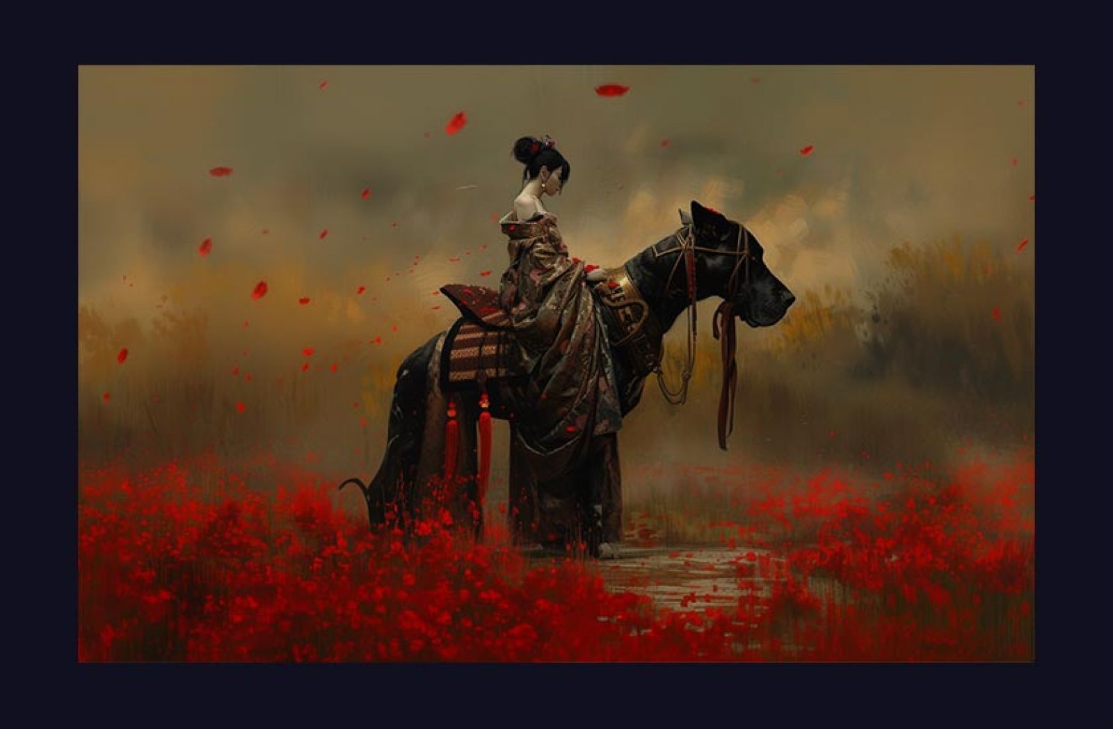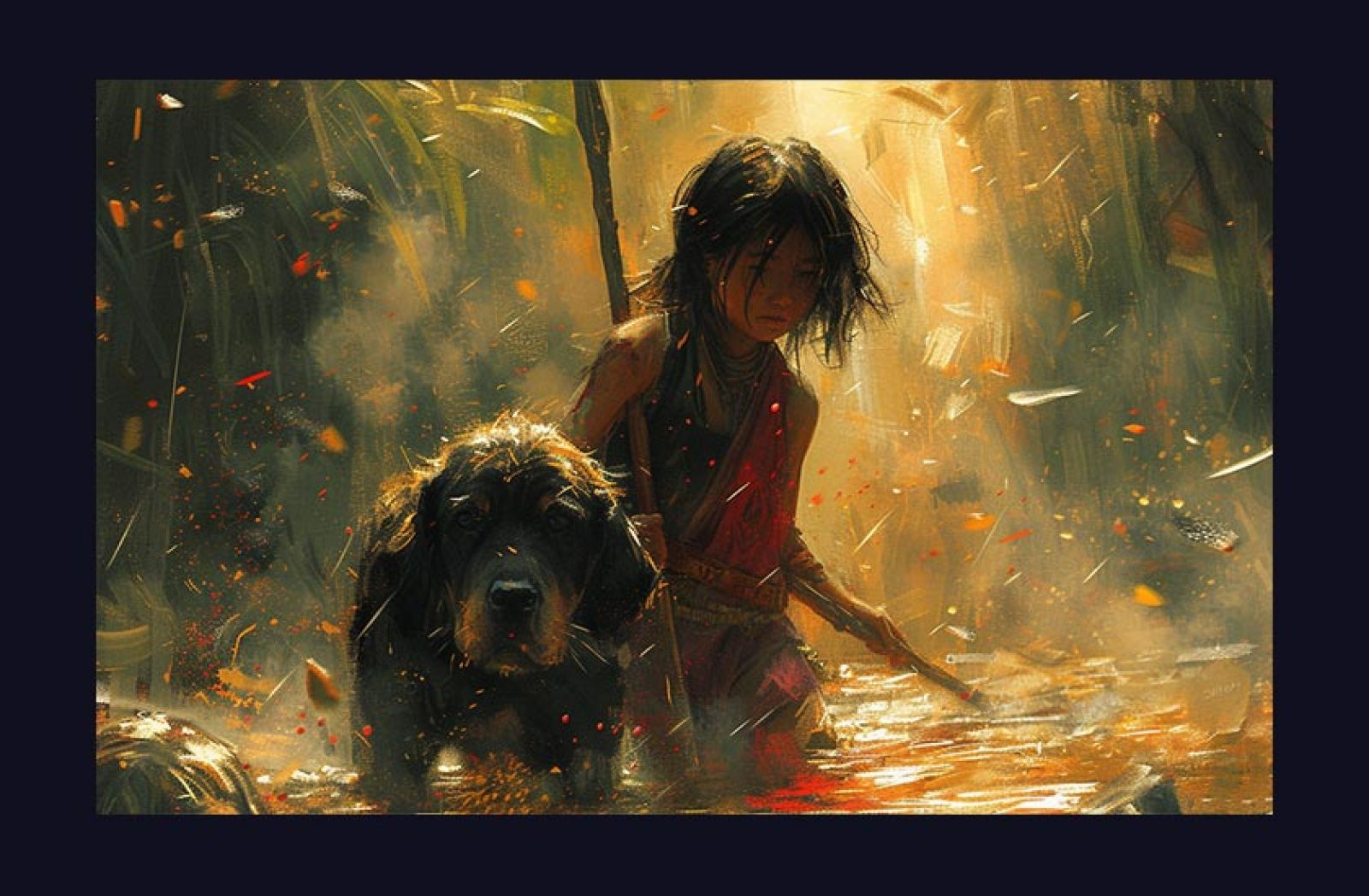When the invaders came, there was nothing left. The roof over their heads was replaced by a cave, the laughter and singing of the wind chimes outside the house was replaced by silence. Joy for the future was replaced by fear. What remained was love. Not for the people, but for the animal that stood by her. And where there was nothing, love conquered fear and transformed it into an iron will. And the iron will forged weapons and forged her body into a weapon. She learned to survive and forgot how to speak. Only whistles and touches were needed to achieve what she wanted. And she grew up hunting mythical creatures. Monsters in the woods, monsters on battlefields, monsters in armor that she cracked open like crabs. She ate their flesh and fed the animal with tendons and entrails.