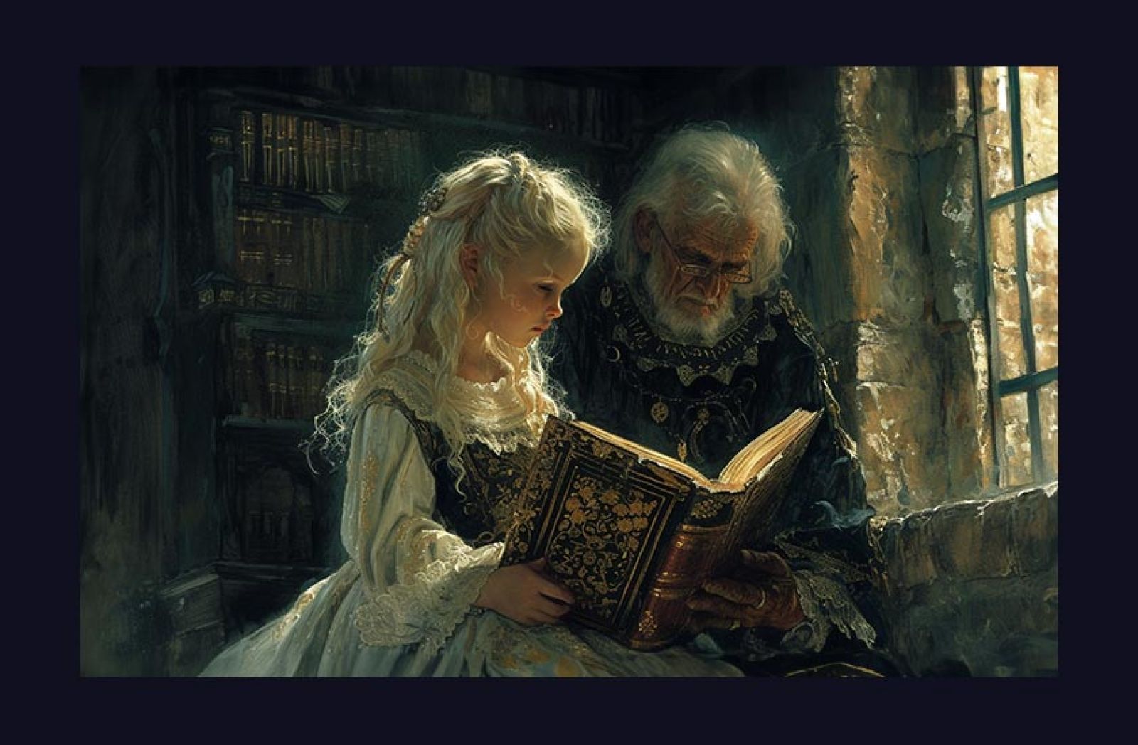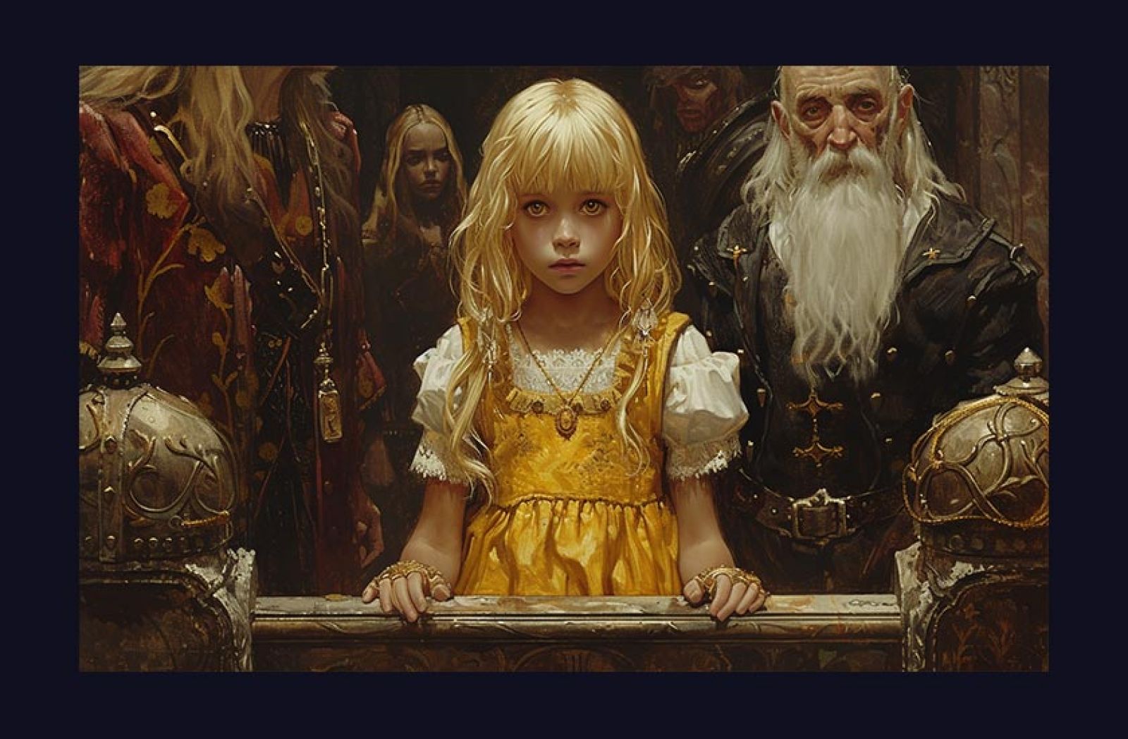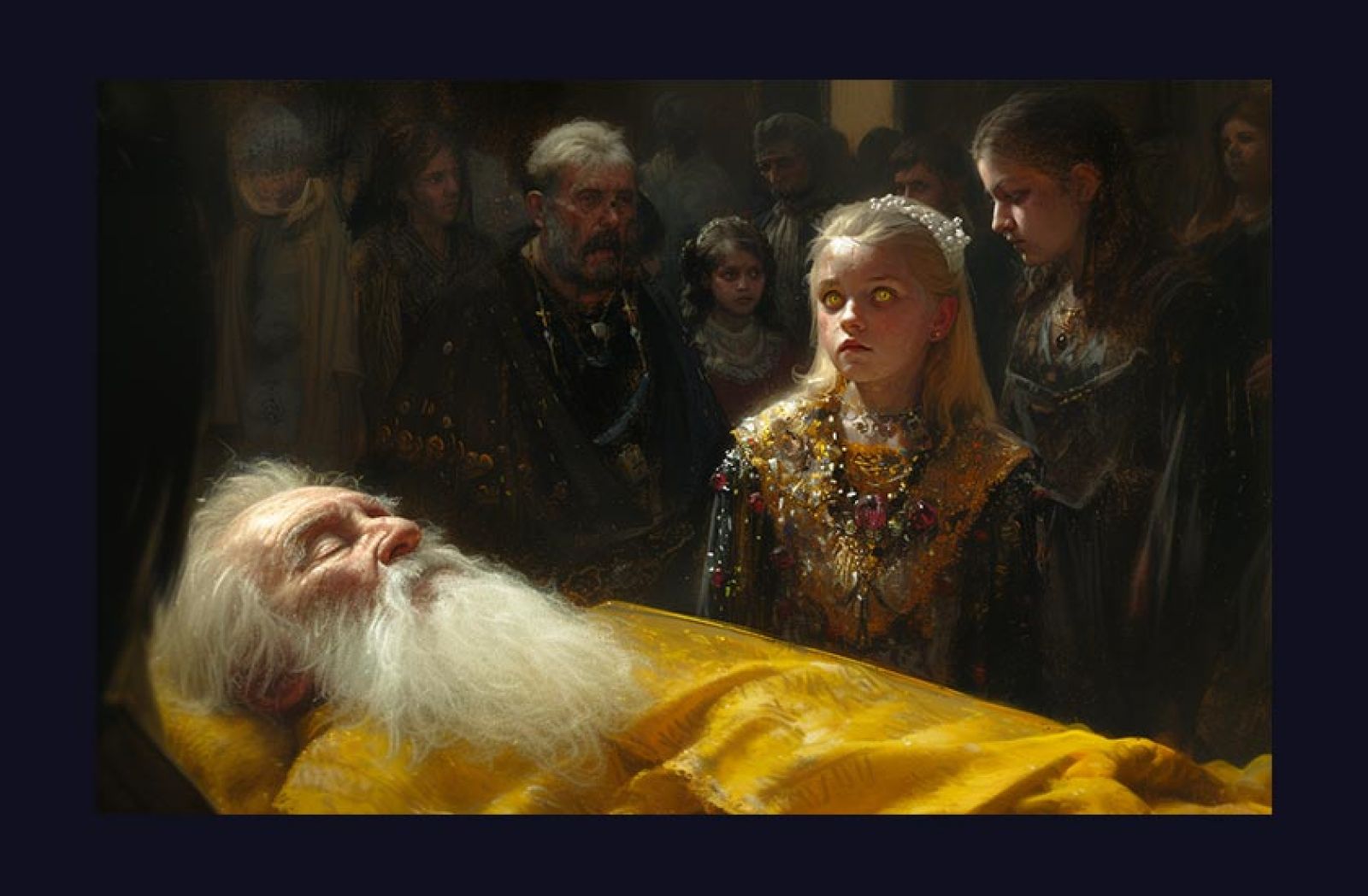 Her grandfather was a king. He traveled around the world with his army, so the little princess was told. What she was not told was that the kindly old man on whose lap she sat, whose voice sang lullabies to her, who explained the rules of nature and men to her, brought the sword to every country he "traveled" to. He was a mass murderer. He murdered for ancient wisdom and books were his prey. He had wiped out farms, villages, towns, he had wiped out entire civilizations. And then he brought their wisdom home with him and read it to her. Ancient words that made no sense to her. It all stopped when he finally found what he was looking for. From a temple protected by 7.777 unarmed monks he took a book that would bring him eternal life. All he needed was a vessel that would listen.