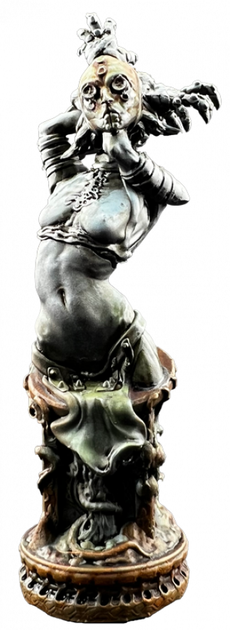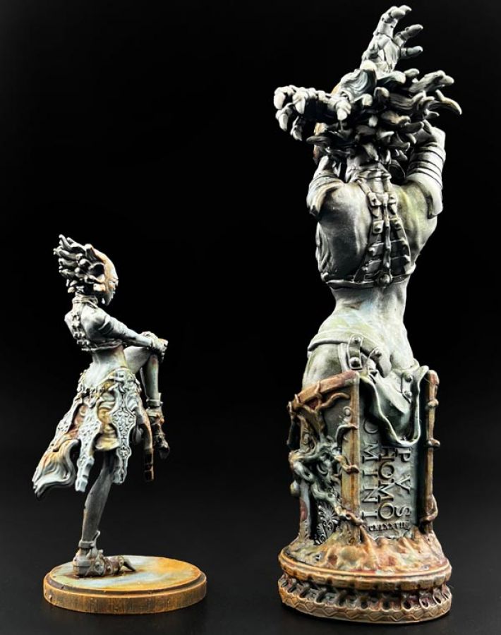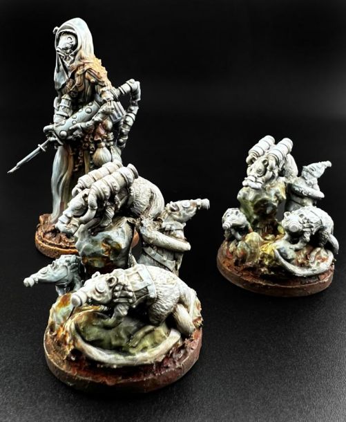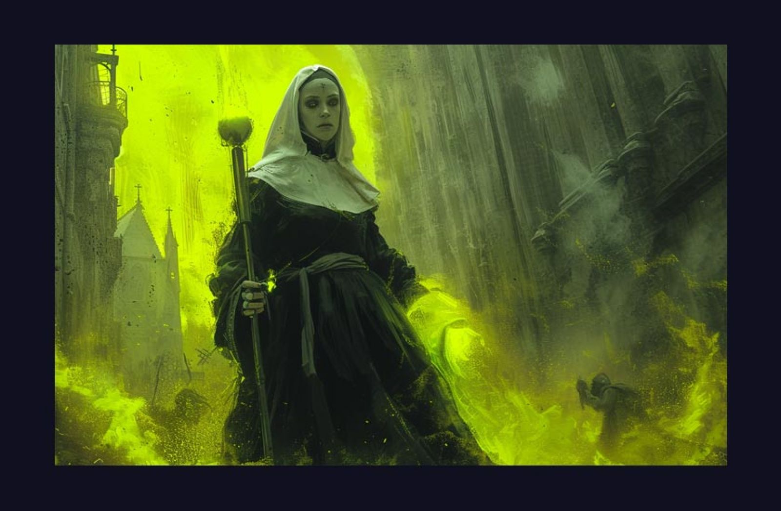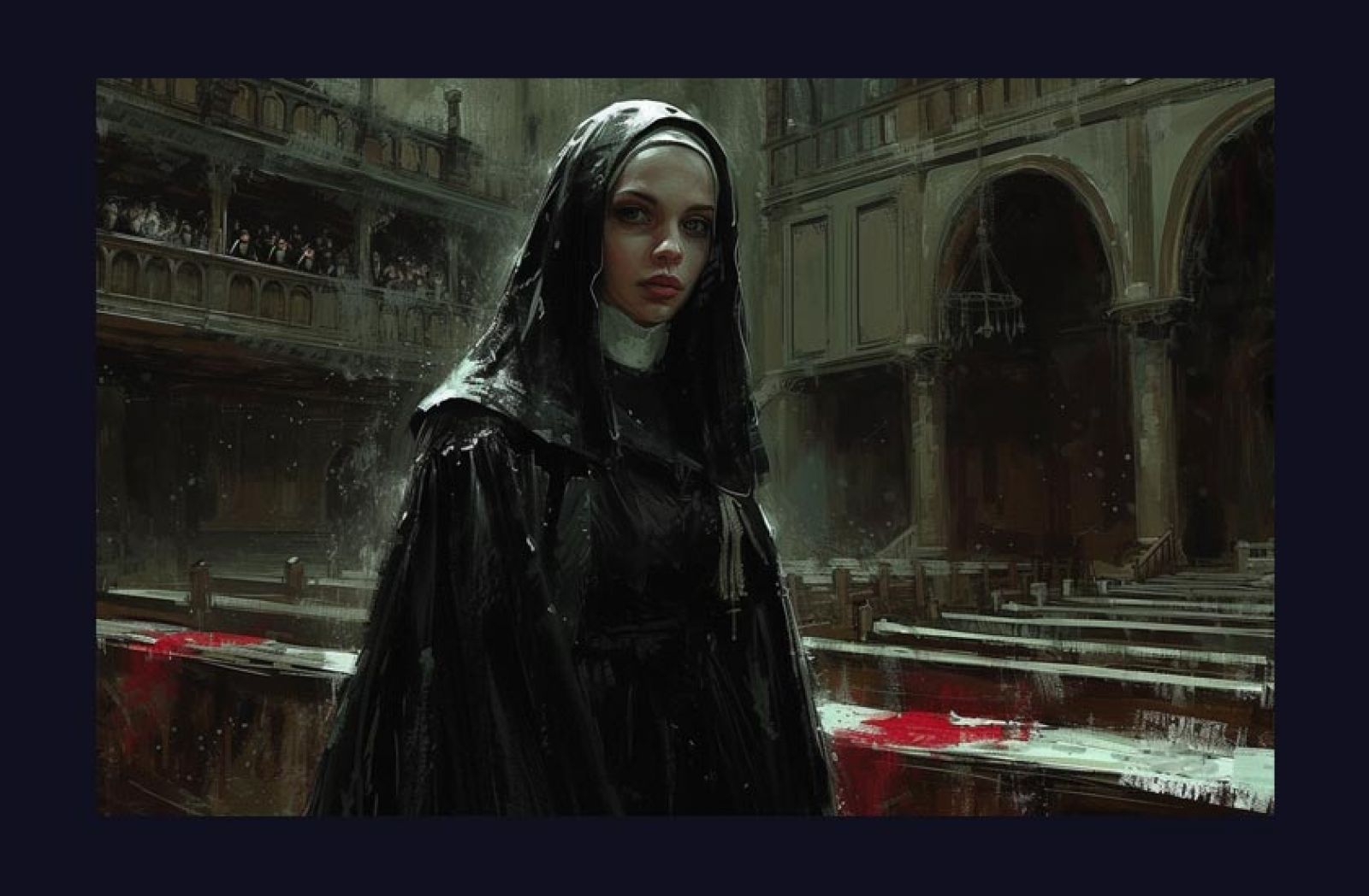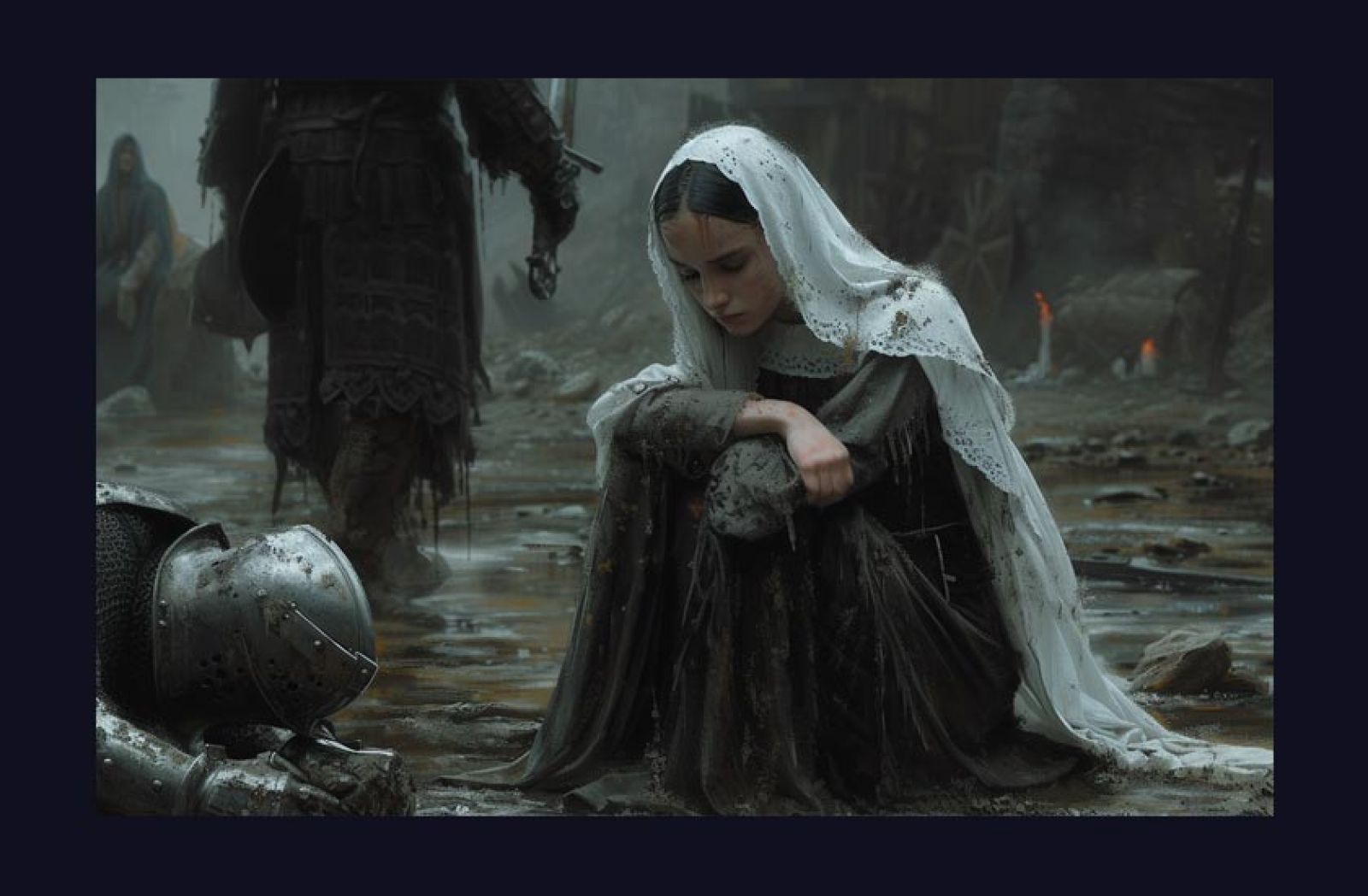 When an institution that pretends to care about the salvation of people's souls considers the suffering of its believers' bodies a punishment from God and therefore ignores them, forbidding even those who have compassion to act compassionately; when knights rot in their armor supported by steel and are pierced by the black death instead of steel, when castles rot and the benevolent have only the rats in their dungeons with whom they can talk, whisper, make plans, then it is time for a revolution: evolution. A body immune to disease that nurtures illness like flowers in a garden: to ravage humanity, to burn down the forest so that something new can emerge from the ashes. A charitable woman, whose charity has turned its back on humanity, now cares for rats who carry the plague into the world of the living, who whisper secrets to her and encourage her that the suffering will soon come to an end. A believer who does not believe in God, does not believe in science. She only believes in progress through death.