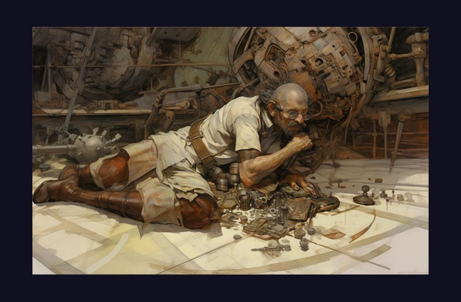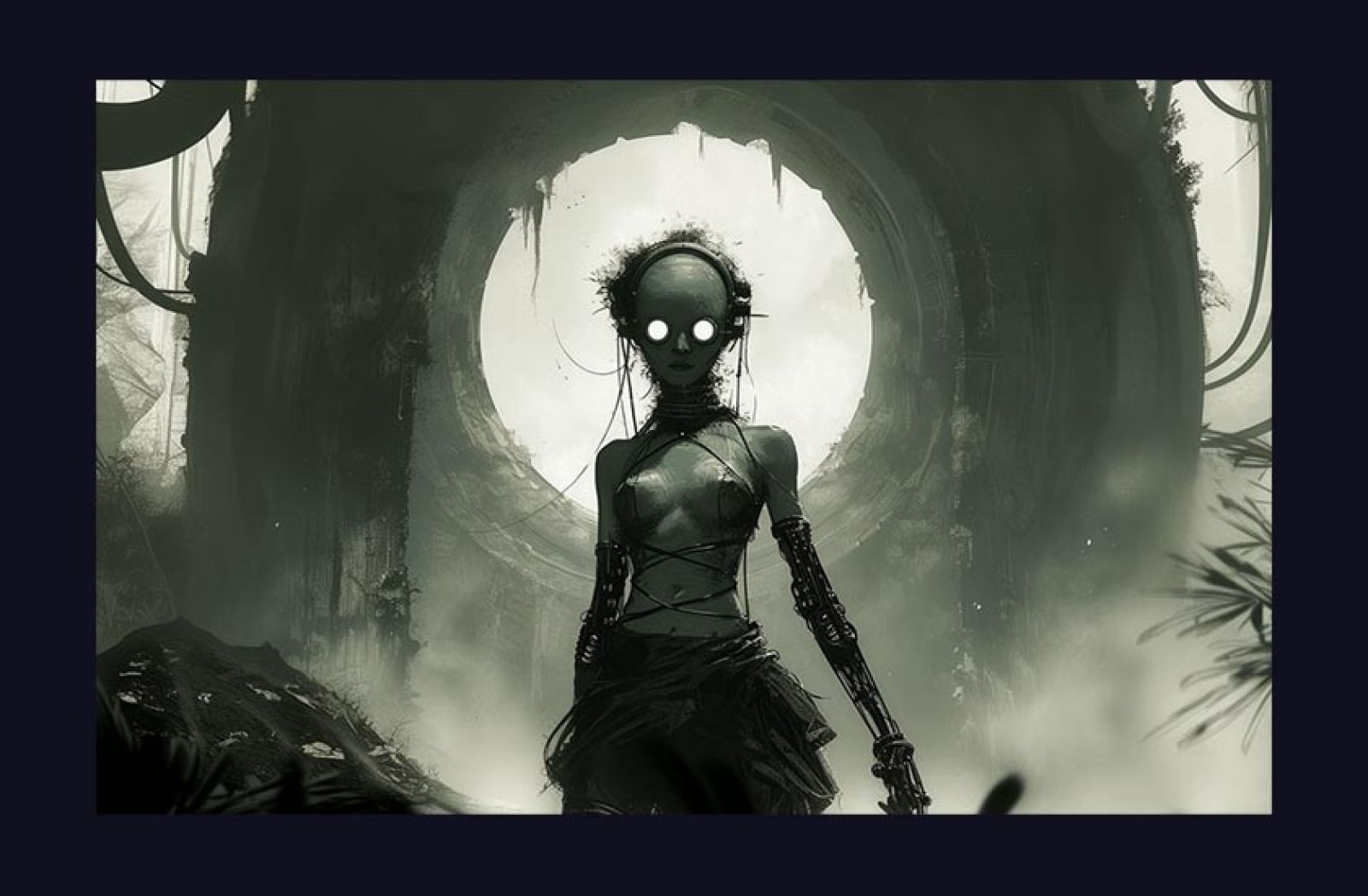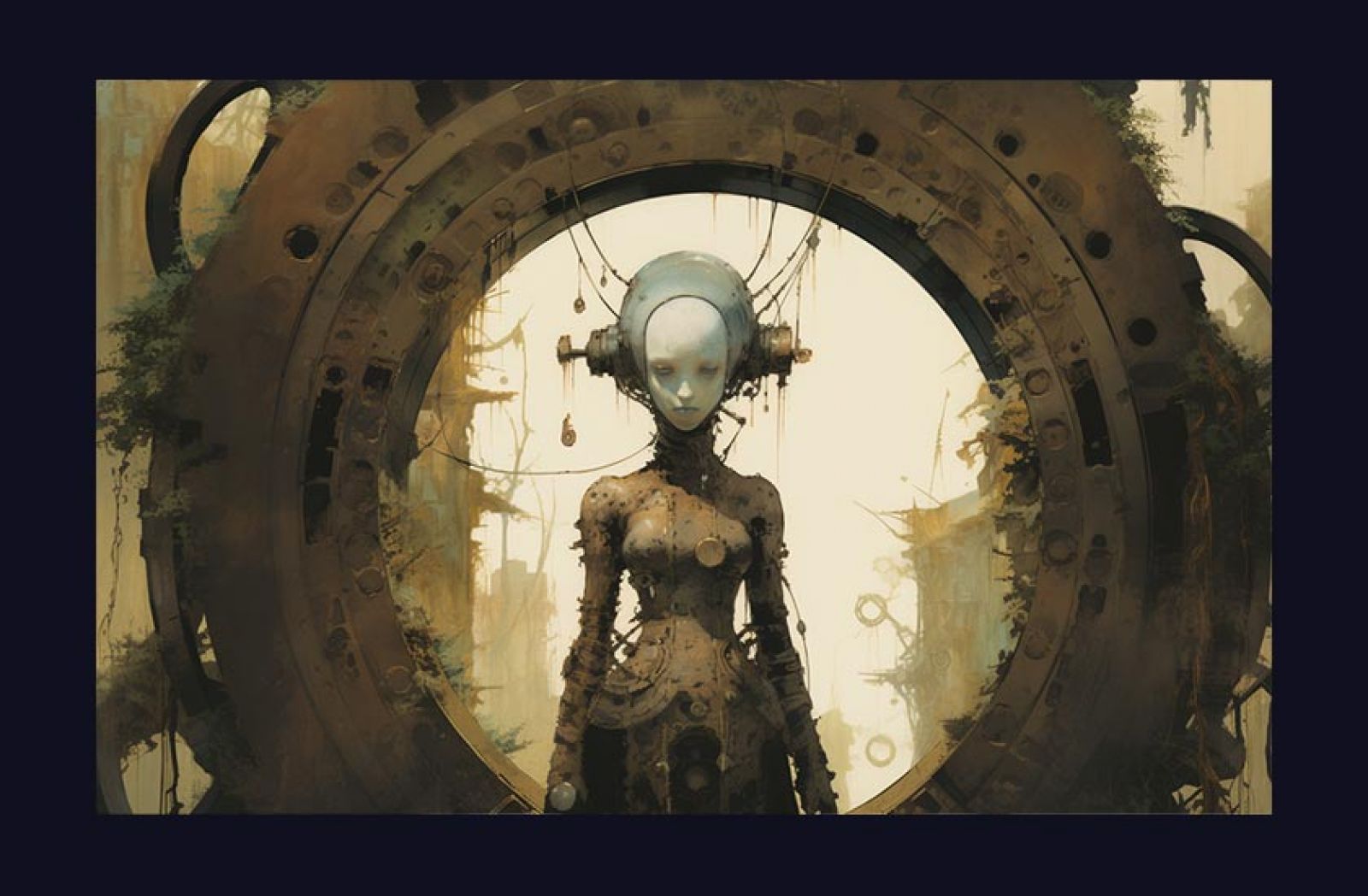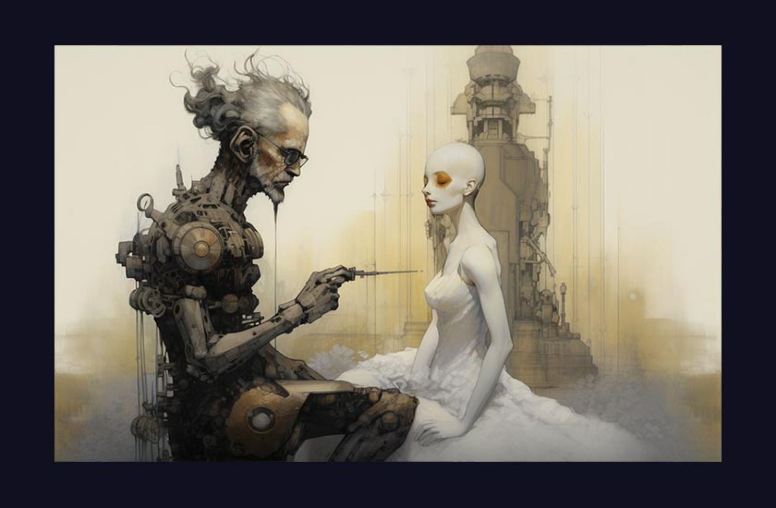 And he worked tirelessly and feverishly, but the work took longer than he had expected. And so the memory faded. But he had promised her a soul and so he worked on the replica until he died. She never got the injection with the soul. But he had told her something: the most important thing in life is curiosity. And so she embarked on her own journey. She recreated her father so that he could complete his work and give her a soul. But a machine cannot build a machine that is capable of creating a soul. This drove her away from her world, because the curiosity in her was alive. And so she moved away from her time and her dimension and descended into the pit. There she saw a tree for the first time. And the sky was blue and not black as she knew it. And everything multiplied. Trees, people, microorganisms. Even the clouds seemed to multiply and grow. Everything seemed to have a soul.