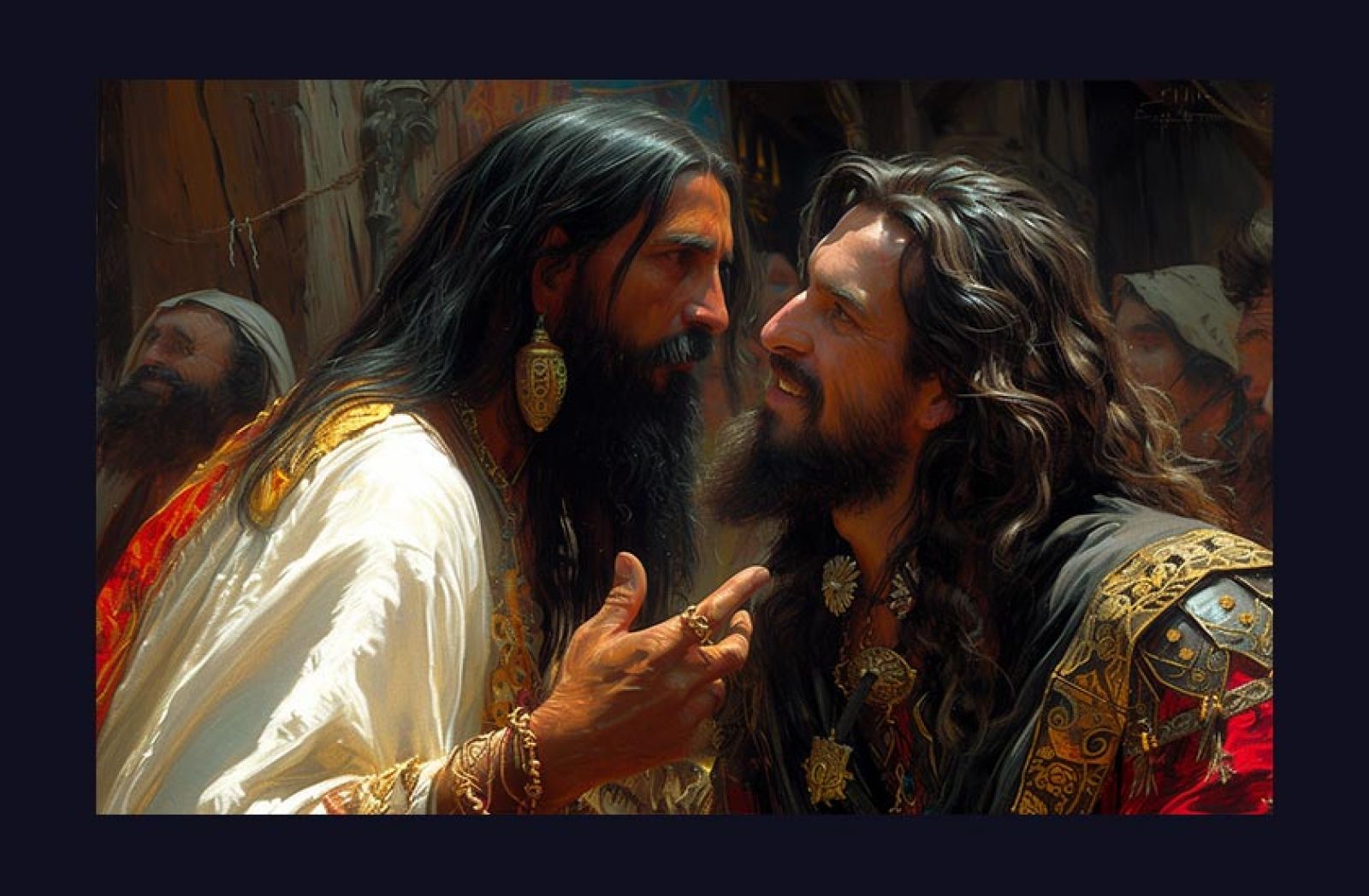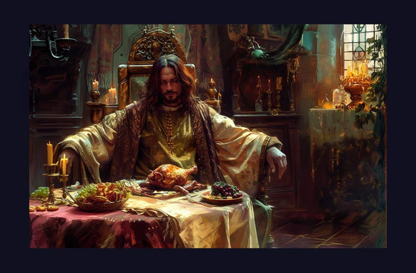 Now he spoke to the mentally feeble. He charmed 12 followers with gold and fine words and the promise of salvation. The 12 followers called him "Messiah" because they feared the "King in heaven", his "father". Soon his followers grew to a thousand, then a hundred thousand. Then he went to war and killed a hundred thousand infidels. Because he always wanted to be someone: a leader, a role model, a herder.