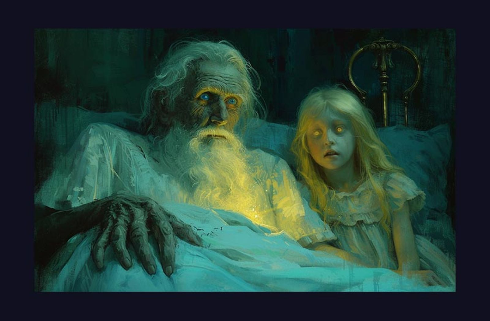 The story of the Fairy King is that of a sick man. The rare disease of lycantrophia, which turns human bone and flesh wolf-like, had infected a farmer. The werewolf, ostracized by his hamlet out of prejudice, whose white fur turned green as he hid from the mob of cutthroats in the swamp, was called "Grey Inch" by the peasants because his grey fangs gleamed in the darkness.