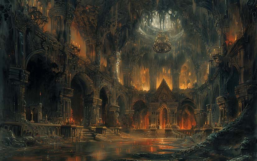 And underneath? In the catacombs? Here, too, a testimony to ingenuity. Torture chambers in which heretics are mutilated and their "dark secrets", which never existed, are elicited from them. And their blood splashes against the walls, the earth absorbs it and soaks the flowers that sprout around the temples.