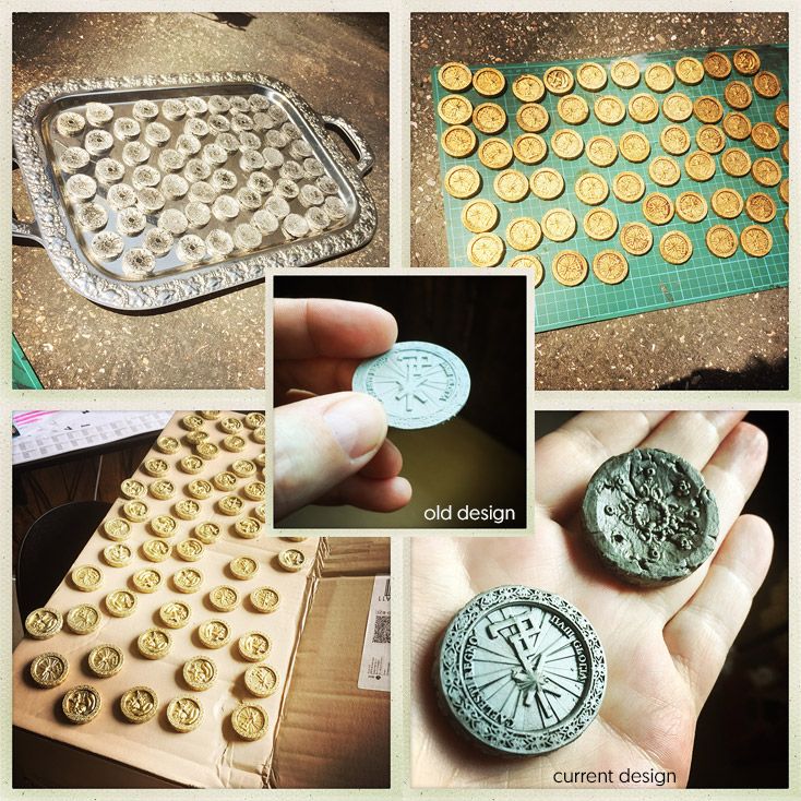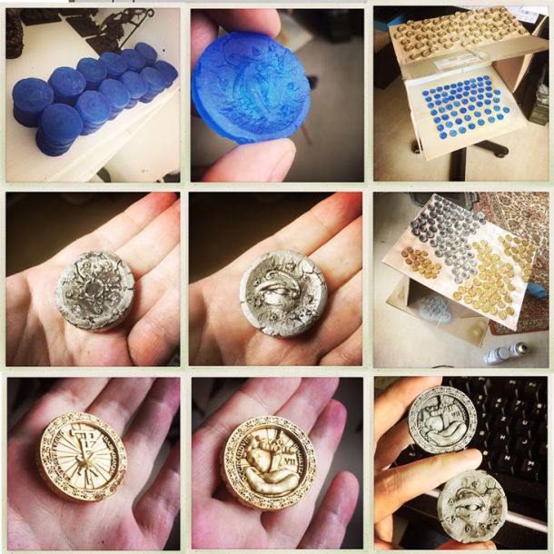 There will be a lot of different markers and coins in the game. Those items must align with the overall mystical theme of the game. They have to seem ancient and used, in two different materials, silver and gold.