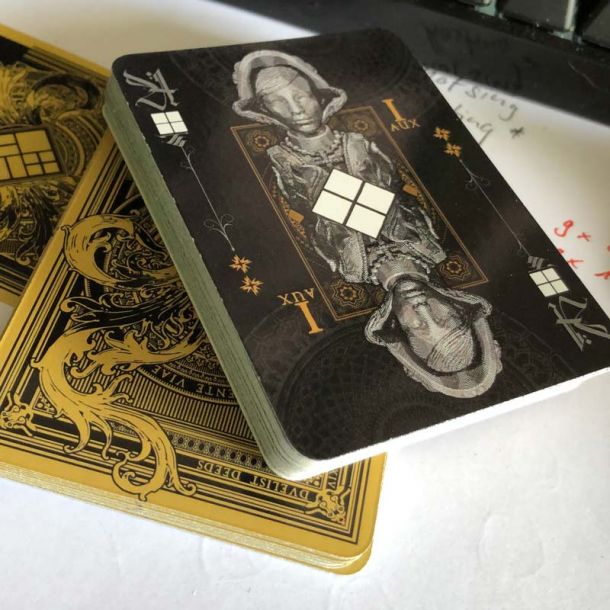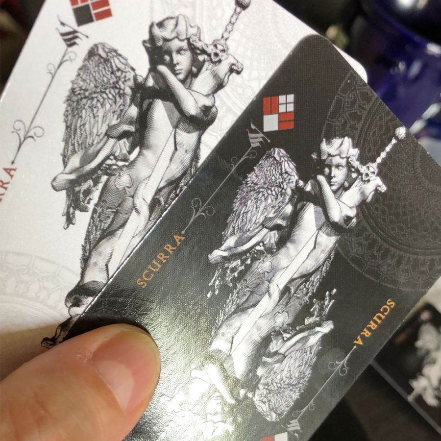 I had some more prints made by a company, but they were pretty much a failure. Apparently the cards were cut with a blunt knife and the corners and edges are pretty "frayed". Otherwise the print looks quite ok. I hope this company (from Germany) will correct this mistake. Normally the company delivers a very high standard of playing-cards.