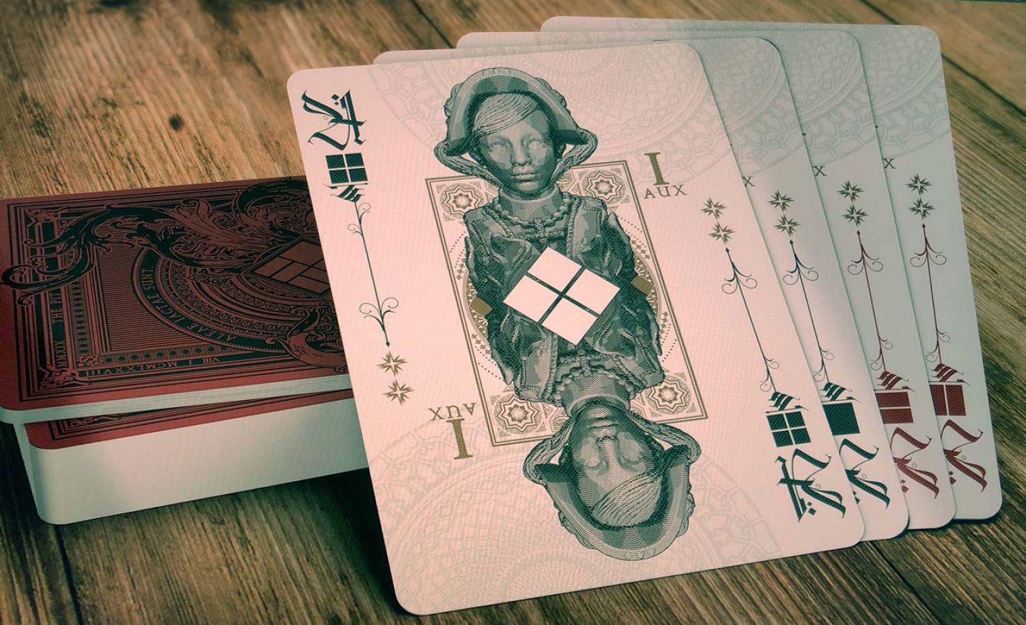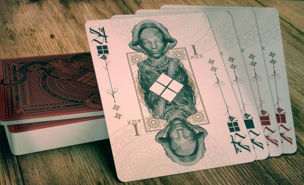 It behaves like a normal poker deck except for the fact that even and odd numbers are specially marked. These markings show how many coins the player gets when he plays the card.