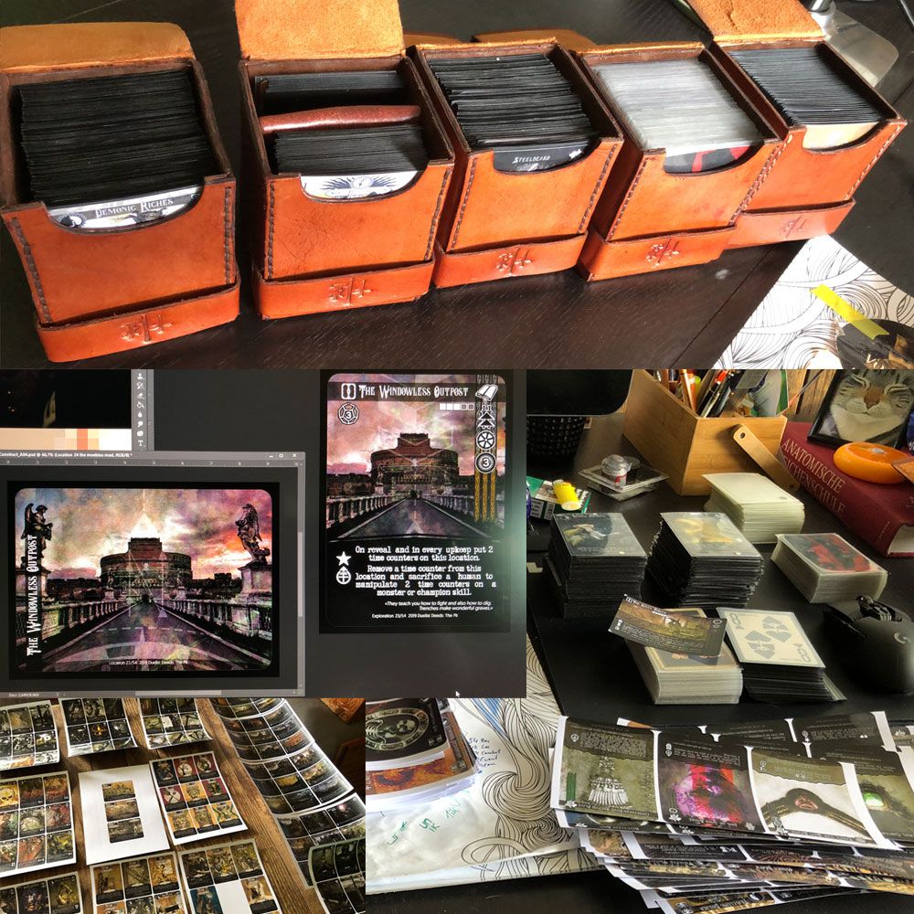 I've been cutting out card prototypes by hand for months, and now, as more and more cards are being made and a lot of changes are being made as the game evolves, the cutting tools needed to be upgraded. Here you can see what I bought. Normally it took me a whole day to cut these cards. With the new tools, I can do it in an hour.