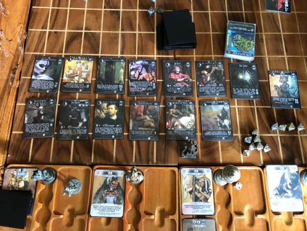 I solved the problem with locations! Remember I said you can't read the location cards once they are in the game and covered up by miniatures? This was a big problem, as the locations sometimes have very profound rules of their own.