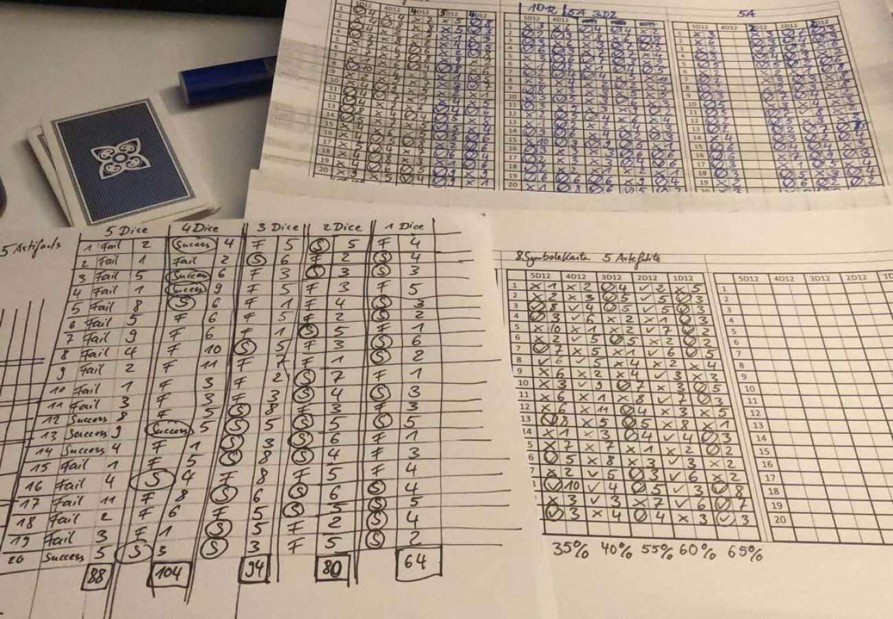 For this mechanic I had to go through endless series of tests and move symbols on the cards back and forth for 5 days until the optimal mix was found. I have never worked this long on so few cards since I started to invent the game. In 5 days I usually manage five times as many cards.