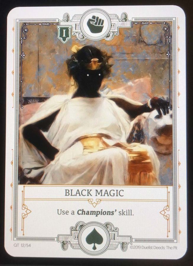 Because the band "Slayer" is quitting this year, and because Slayer is one of my favorite bands, I have named every card in the deck after a Slayer song. Both the function of the card and its artwork match the name of the Slayer song for the card. Phew! That was exhausting.