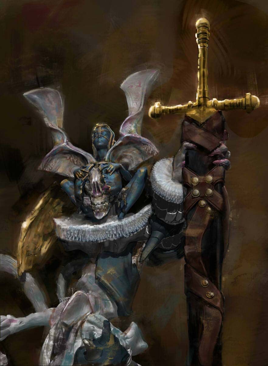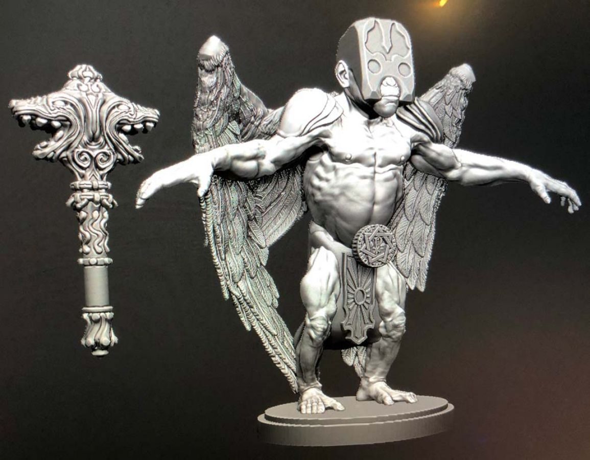 As you can see in the gallery, I also worked this month on one of the most elaborate miniatures the game has to offer. The working title of the angel is "Madan the Throne-Mason". The angel consists of a total of 9 miniatures: The main miniature and his bust, as well as 7 other smaller monkeys. The rules for this giant angel are still under development.