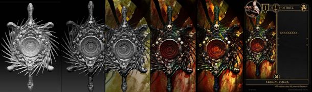 You can also see in the gallery how I tried to create an illustration of a demon totem with ZBrush and Photoshop. There is a nice render option in ZBrush that draws very easily adjustable and controllable outlines around the individual elements. I think this is a very nice way to create artwork for cards. I will continue to explore these possibilities in the future and perhaps improve my technique.