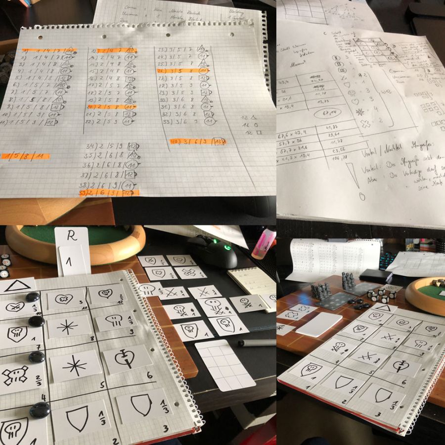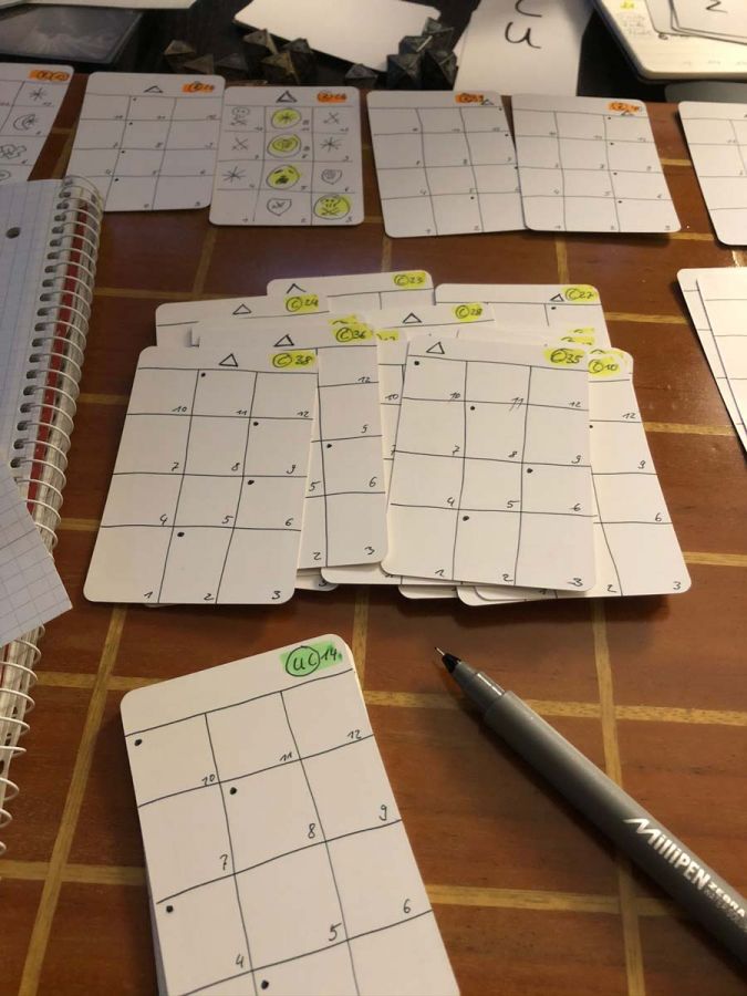 I made a big "DinA4 card" which I could stare at for hours and on which I could arrange different symbols. Each card had to be constructed according to certain rules, which are not visible to the player.
