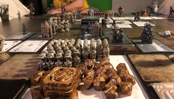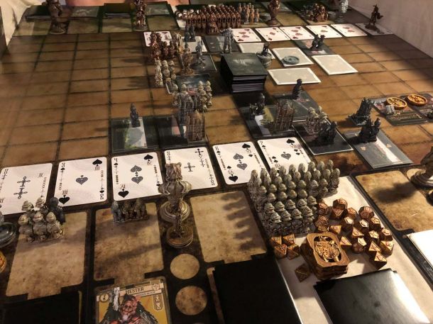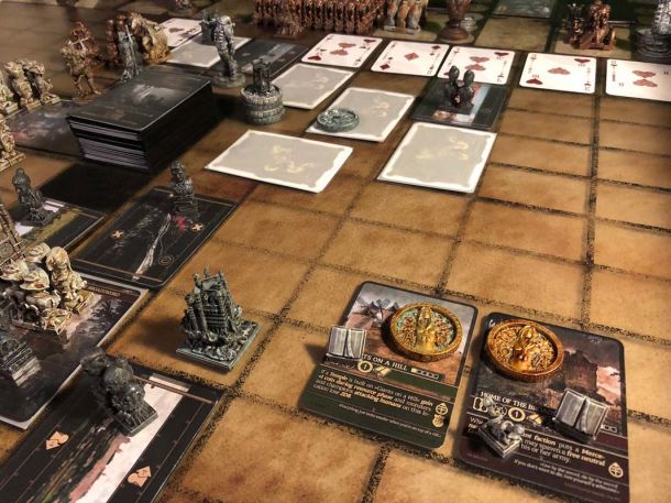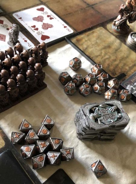 As i had a lot to do for my real job this month, we made only some test games and i finished up the new demon. Also I finished the coins and painted a second layer of contrast color in bronze on the silver coins. That pulls it more together with the color of the demons.