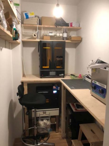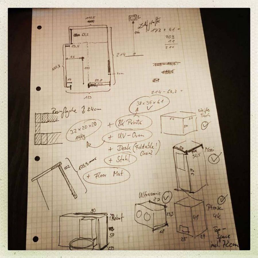 As the new apartment no longer had 200 square meters, everything had to take place in a very small space. So here's what I did: I rented an apartment that had a small storage room. Then I measured all my devices, built 3D proxies of them and then designed a shelving system that I could have cut to size by a carpentry shop and fit it into the storage room so that all my devices would fit in the space.