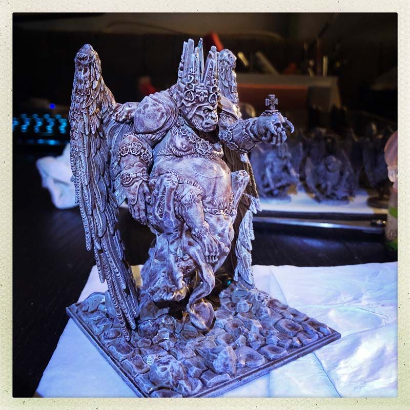First I had to create a proof of concept. A miniature that is huge, that doesn't look like it's standing on "stilts", that is attractive and that doesn't take up any space on the playing field and yet doesn't conflict with other, smaller miniatures.