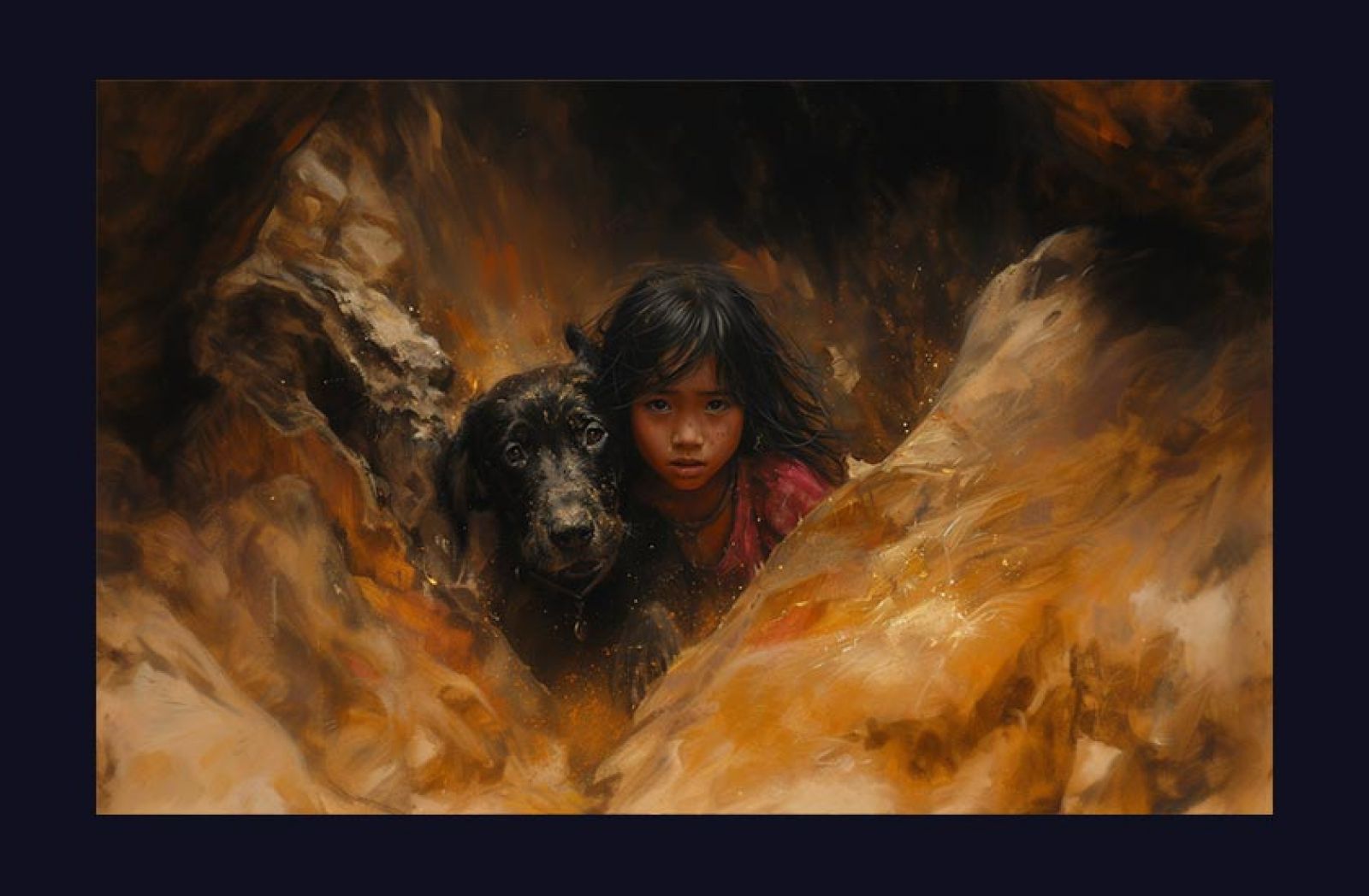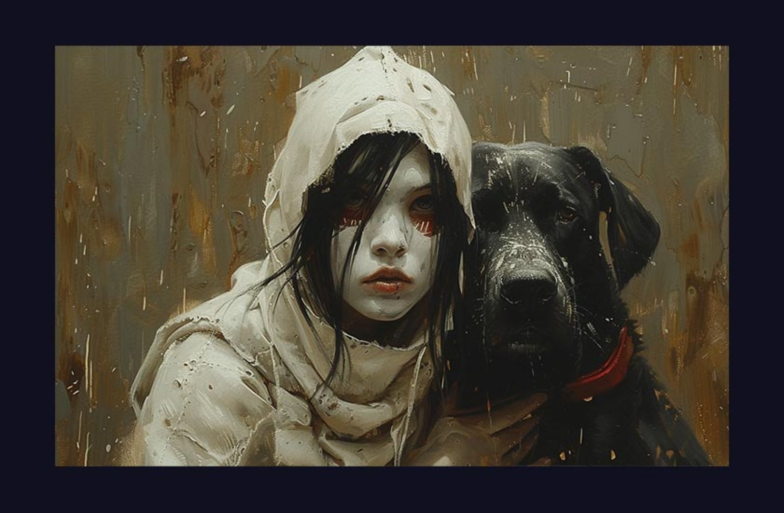 When the invaders came, there was nothing left. The roof over their heads was replaced by a cave, the laughter and singing of the wind chimes outside the house was replaced by silence. Joy for the future was replaced by fear. What remained was love. Not for the people, but for the animal that stood by her. And where there was nothing, love conquered fear and transformed it into an iron will. And the iron will forged weapons and forged her body into a weapon. She learned to survive and forgot how to speak. Only whistles and touches were needed to achieve what she wanted. And she grew up hunting mythical creatures. Monsters in the woods, monsters on battlefields, monsters in armor that she cracked open like crabs. She ate their flesh and fed the animal with tendons and entrails.