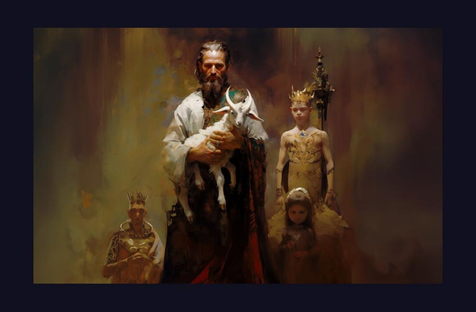 Now he spoke to the mentally feeble. He charmed 12 followers with gold and fine words and the promise of salvation. The 12 followers called him "Messiah" because they feared the "King in heaven", his "father". Soon his followers grew to a thousand, then a hundred thousand. Then he went to war and killed a hundred thousand infidels. Because he always wanted to be someone: a leader, a role model, a herder.