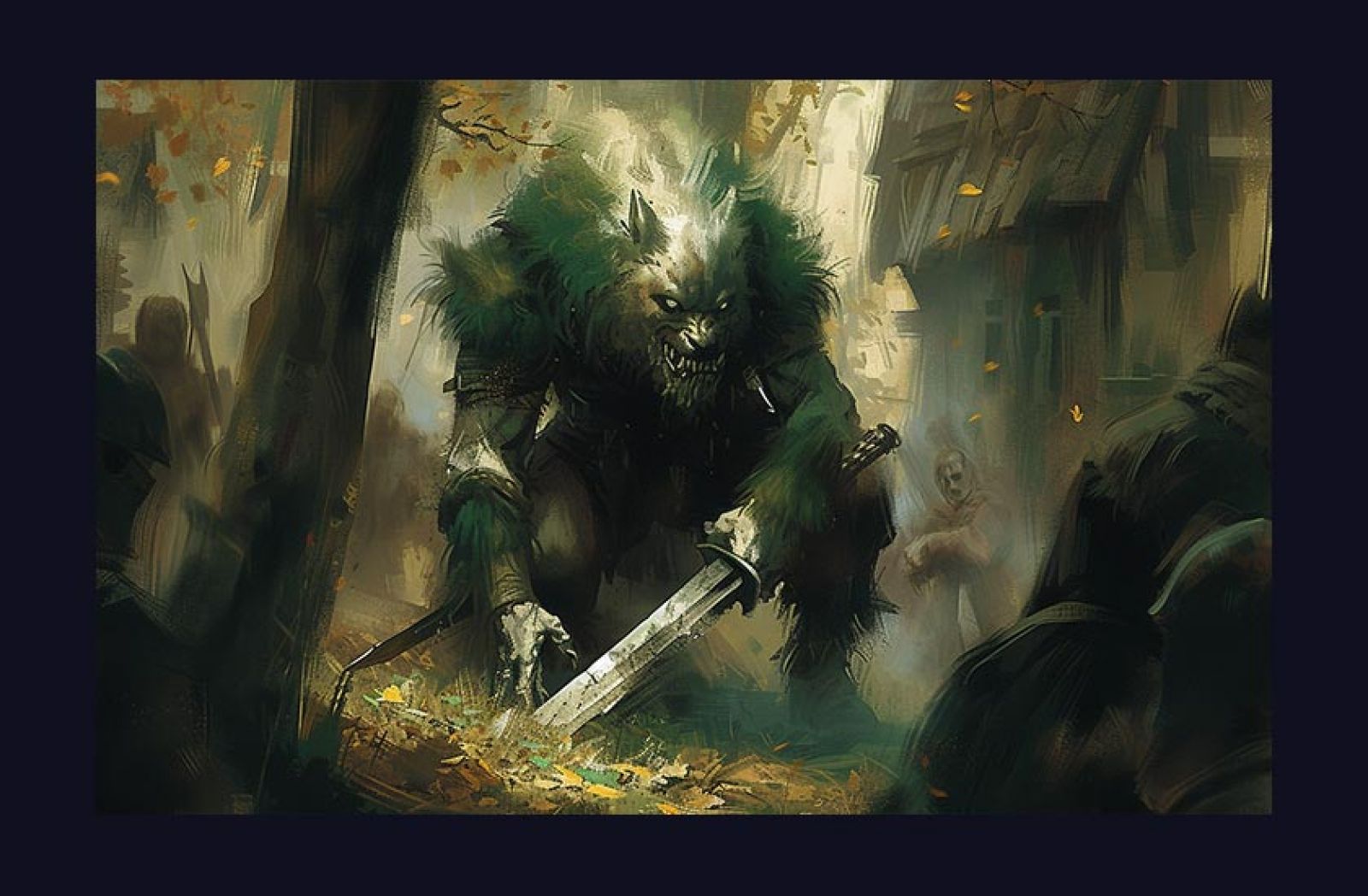 A gunslinger, whose beard also shimmered with gray and who traveled in a wagon, responded to the wanted notice, killed the monster, recovered the monster's treasure and gifted it to the peasants. He freed the fairies that the werewolf had collected out of loneliness. The humans glorified the mercenary, who gained supernatural powers from the grateful fairies. They forgot the werewolf, for they never realized that without nemesis there would be no heroes and without prejudice there would be less nemesis.