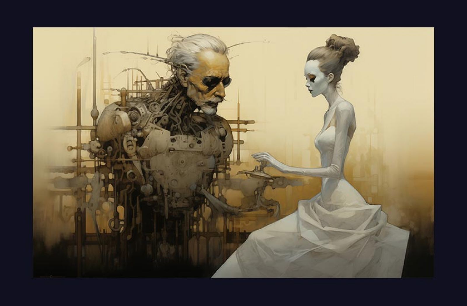 And he worked tirelessly and feverishly, but the work took longer than he had expected. And so the memory faded. But he had promised her a soul and so he worked on the replica until he died. She never got the injection with the soul. But he had told her something: the most important thing in life is curiosity. And so she embarked on her own journey. She recreated her father so that he could complete his work and give her a soul. But a machine cannot build a machine that is capable of creating a soul. This drove her away from her world, because the curiosity in her was alive. And so she moved away from her time and her dimension and descended into the pit. There she saw a tree for the first time. And the sky was blue and not black as she knew it. And everything multiplied. Trees, people, microorganisms. Even the clouds seemed to multiply and grow. Everything seemed to have a soul.